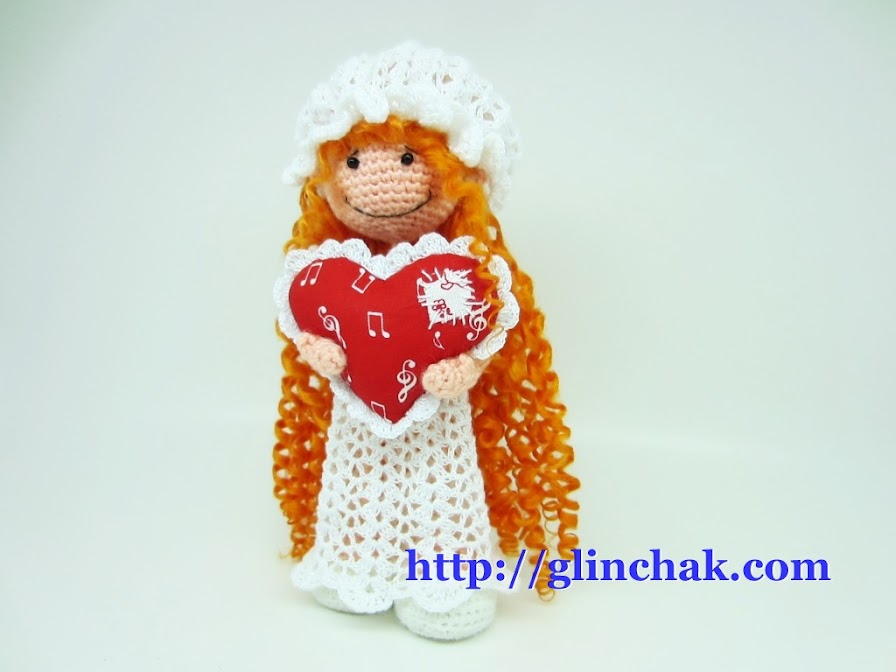 Он состоит из подробного описания вязания самой куклы, её одежды, а так же включает в себя еще один мастер-класс по шитью аксессуара - подушечки с ажурным кружевом.